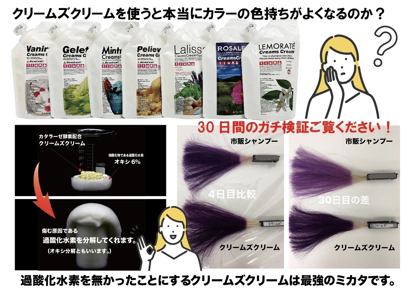 ⚪︎過酸化水素除去とアルカリ除去が可能な為、カラーリングやパーマなどの持ちが良くなる