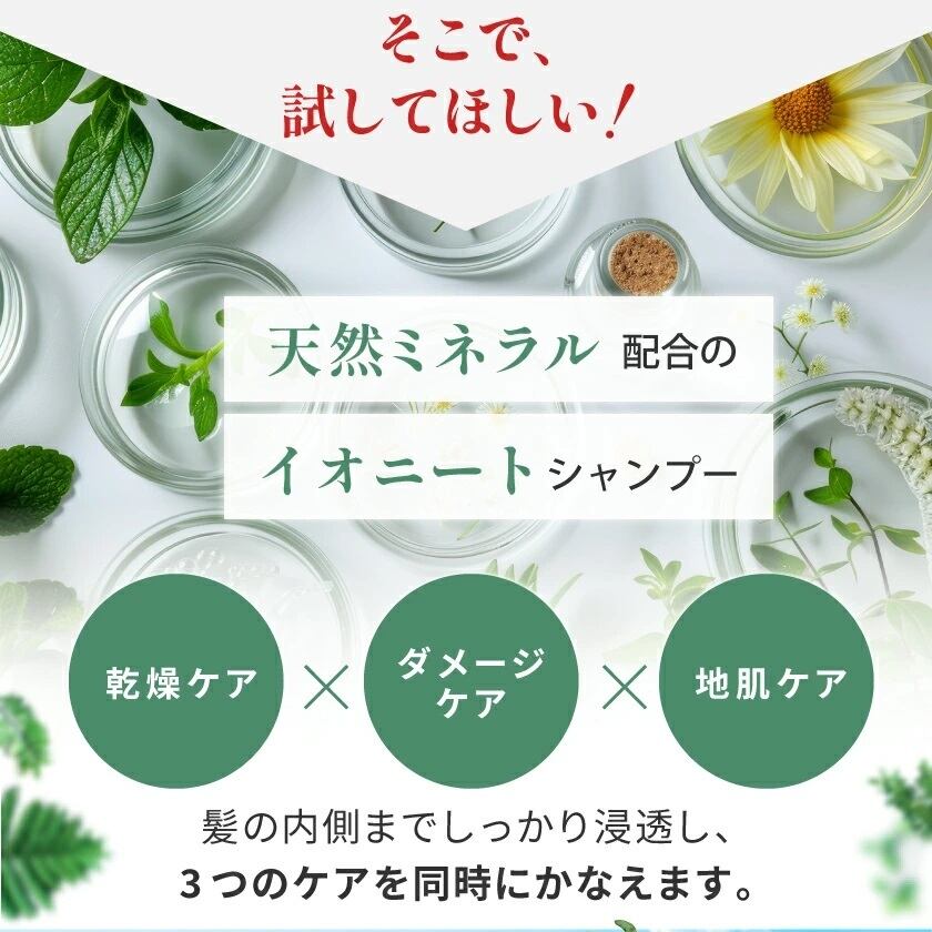 イオニートシャンプーは、イオンの力でリンス効果・トリートメント効果がえられるのでリンスは必要ありません。